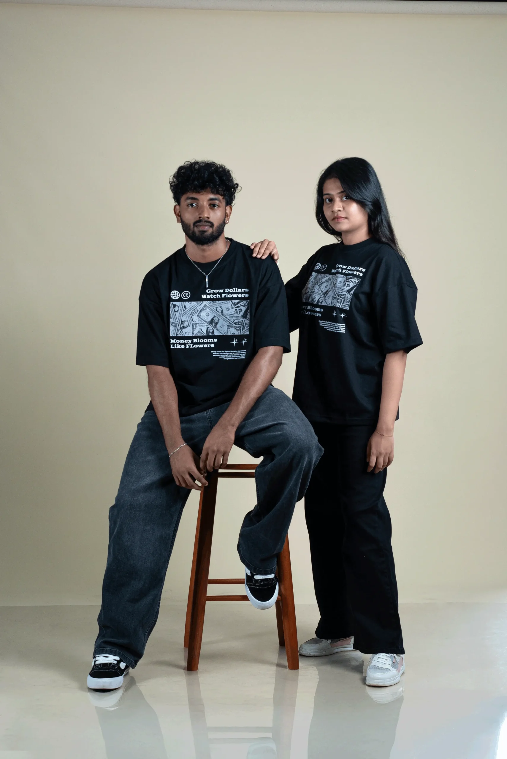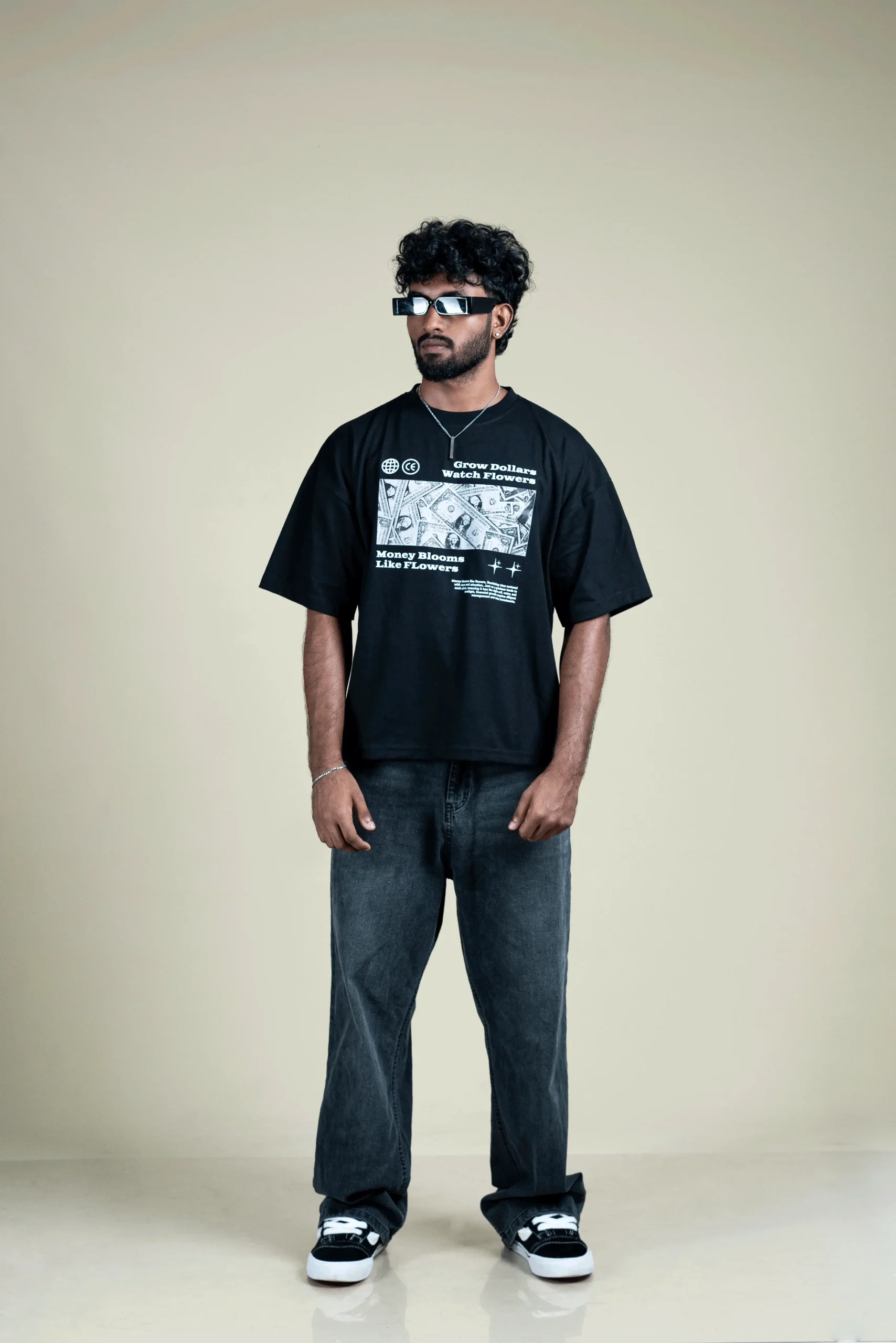 graphic blends iconic bills with a bold mantra: Grow Dollars. Watch Flowers. Designed for